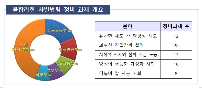 법제처 선정한 '불합리한 차별법령 정비' 대상 과제에 포함