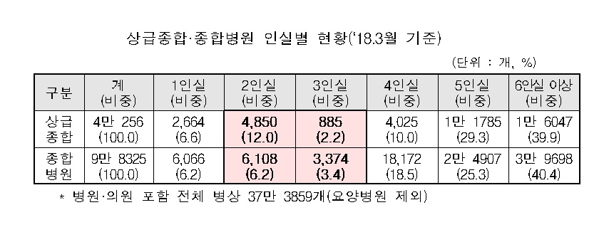 2·3인실 1만5000여개 대상으로 보험 적용…입원료 부담 절반 수준으로 줄어