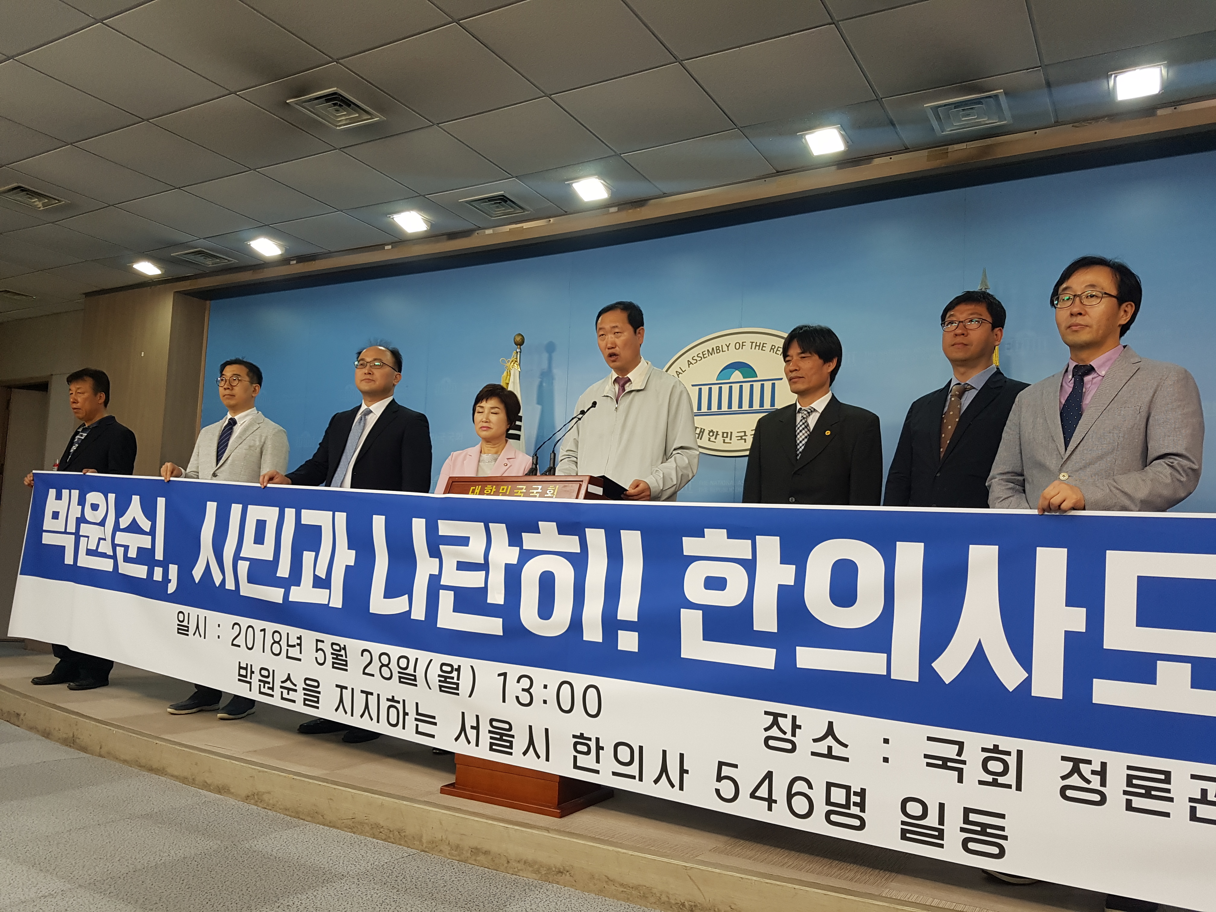 서울시한의사회가 28일 국회 정론관에서 박원순 서울특별시장 후보의 승리를 기원하는 지지선언을 하고 있다.