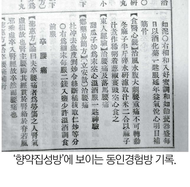 소개 사진에 동일선상에서 『食醫心鏡』, 『鄕藥易簡方』이 『東人經驗』과 나란히 표기되어 있는 것을 발견할 수 있다.