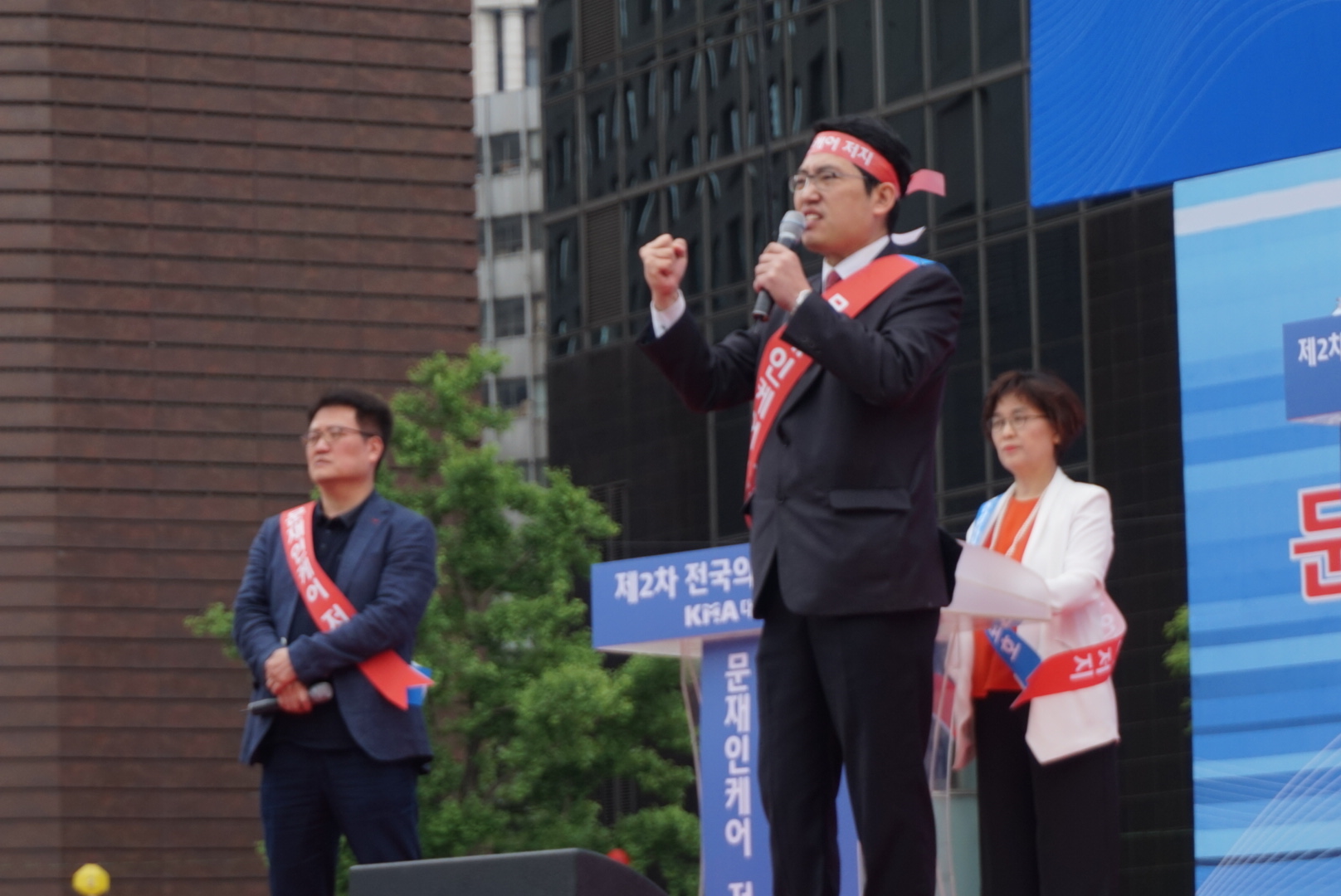 집회와 행진이 진행되는 동안 시내 한 켠에는 의협의 이같은 행동을 반대하듯 “문재인케어를 지지한다”는 피켓을 든 시민들의 모습도 보였다.
