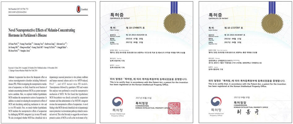경희대학교 한의학과 박히준 교수는 한의학과 서양의학의 융합연구를 통해 파킨슨병에 대한 침 치료 기전을 규명하고 그 과정에서 새로운 치료 후보물질(멜라닌응집호르몬)을 발견, 멜라닌응집호르몬의 세포주 및 파킨슨병 동물모델에서 도파민신경 보호효과를 확인함으로써 파킨슨병 치료의 새로운 타깃이 될 수 있다는 사실을 최초로 규명해 냈다.