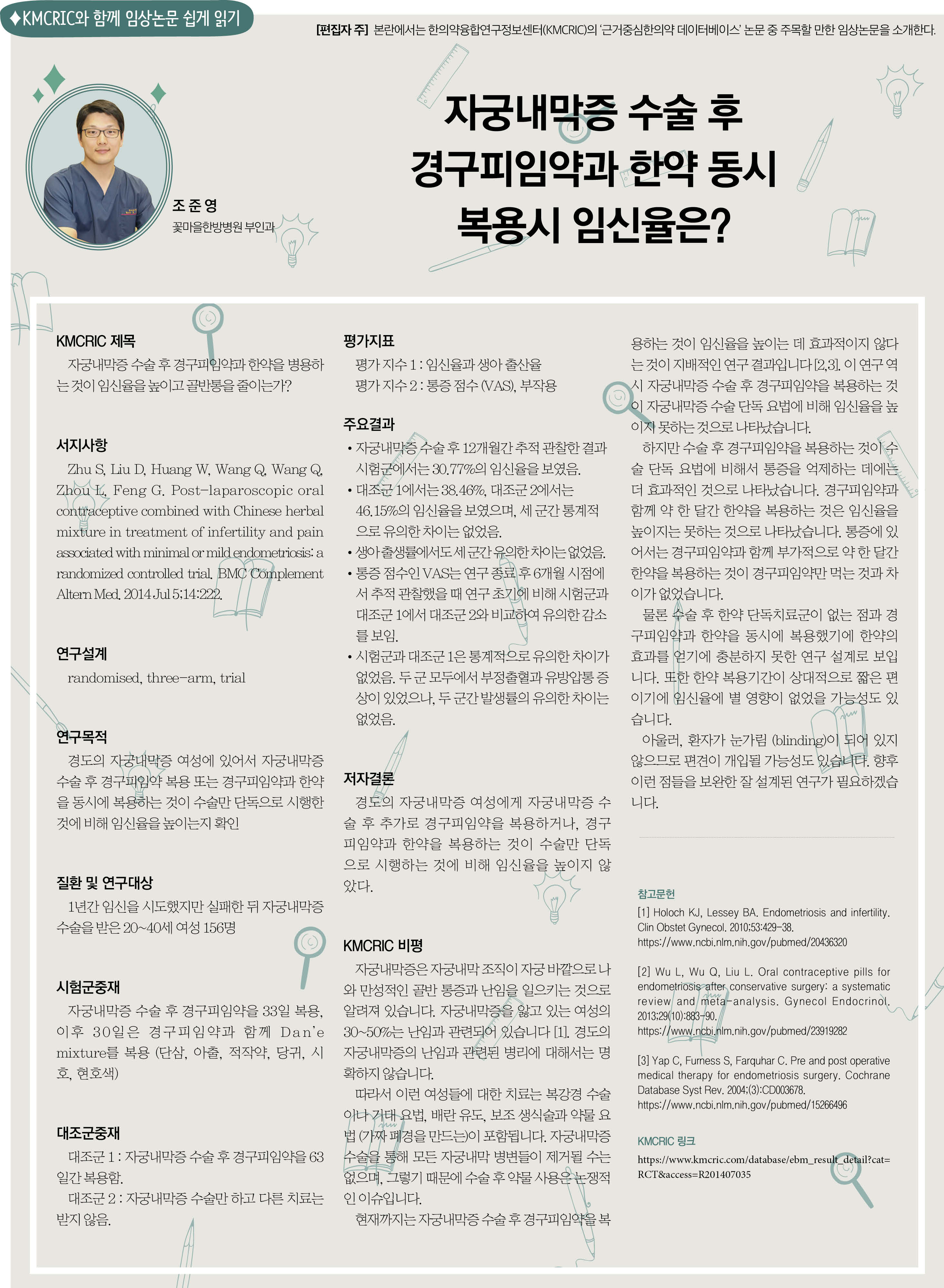 물론 수술 후 한약 단독치료군이 없는 점과 경구피임약과 한약을 동시에 복용했기에 한약의 효과를 얻기에 충분하지 못한 연구 설계로 보입니다.