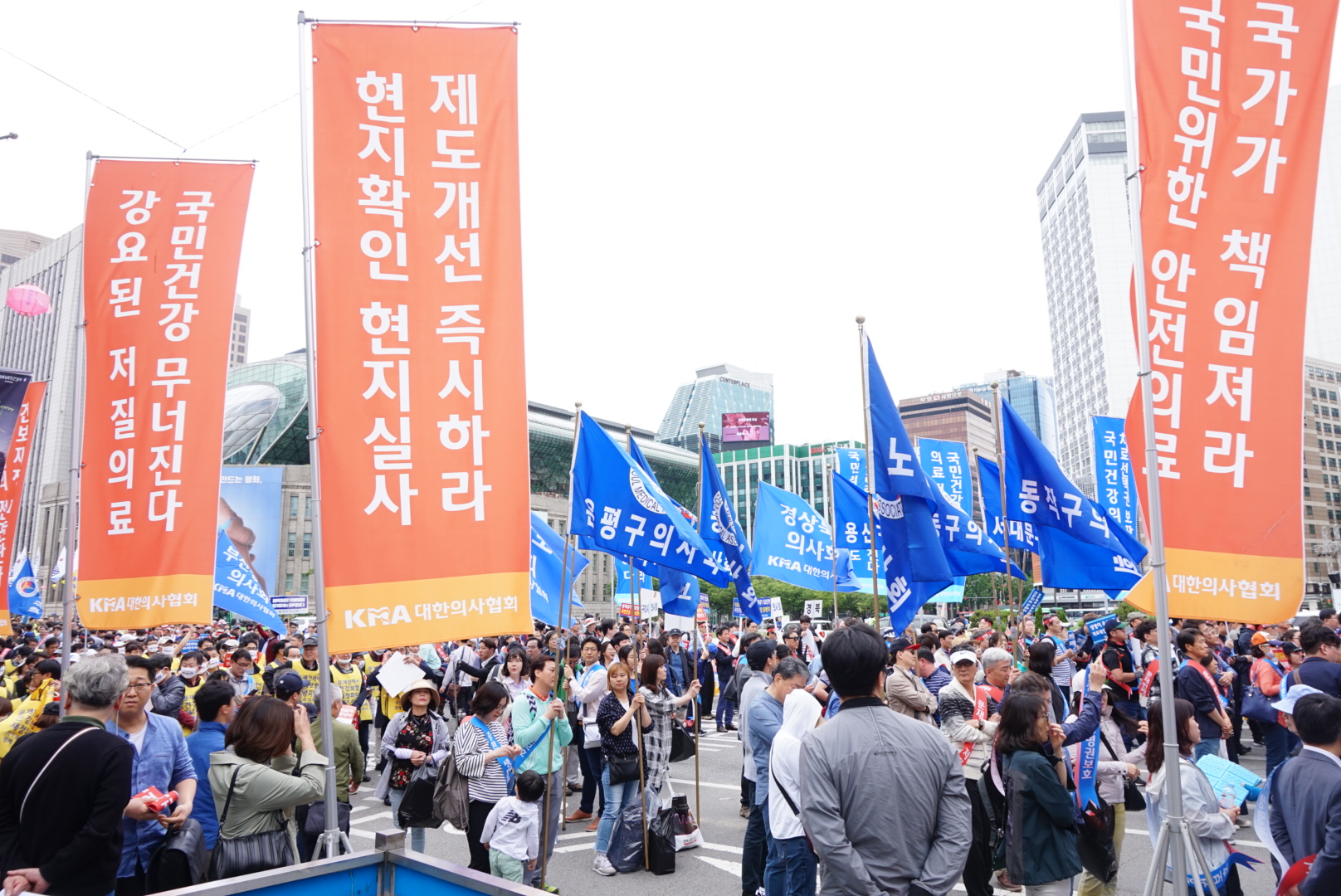 대한의사협회가 지난 20일 서울 덕수궁 대한문 앞에서 전국의사궐기대회를 개최하고 있다.