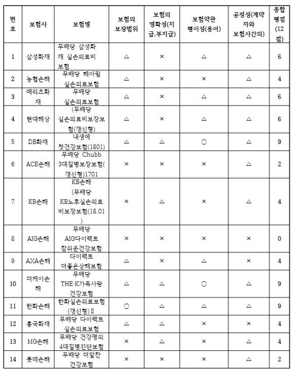 소비자주권시민회의, 국내 14개 손보사 의료실손보험 약관평가 결과 발표