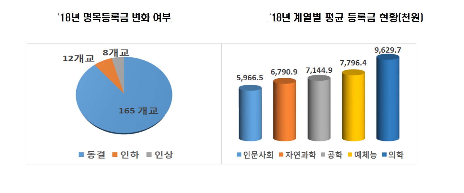 학생 1명이 매해 부담하는 계열별 평균 등록금은 의대에 이어 예체능 계열이 779만 6400원, 공학 계열이 714만 4900원, 자연과학과 인문사회계열이 각각 679만원·596만 6500원 순으로 높았다.