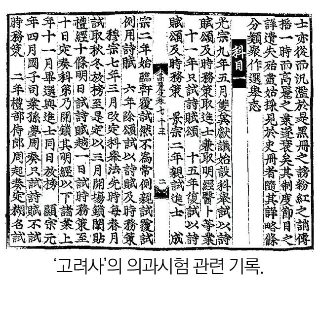 고려시대 의사 과거제도는 광종 9년(958년)에 후주 사람 雙冀의 건의로 시작됐다.