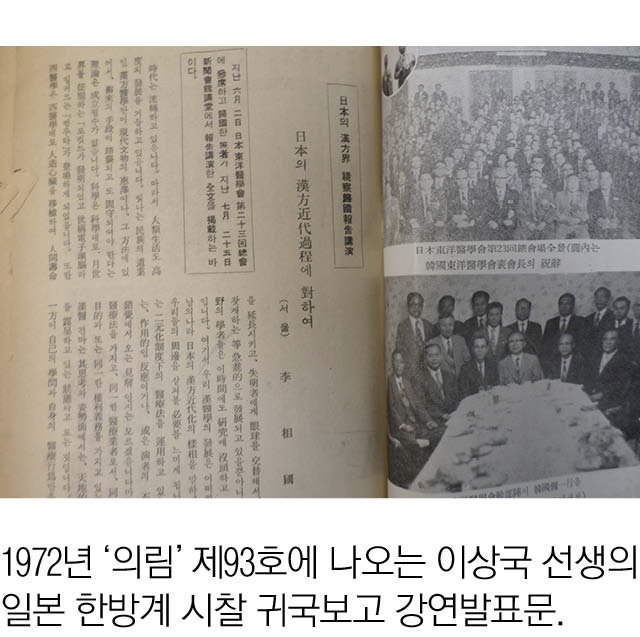 [한의신문] 李相國 先生(1916〜1976)은 1972년 6월2일 日本 東洋醫學會 제23회 총회에 참석한 후 귀국해 7월25일 新聞會館 講堂에서 보고 강연을 실시한다.