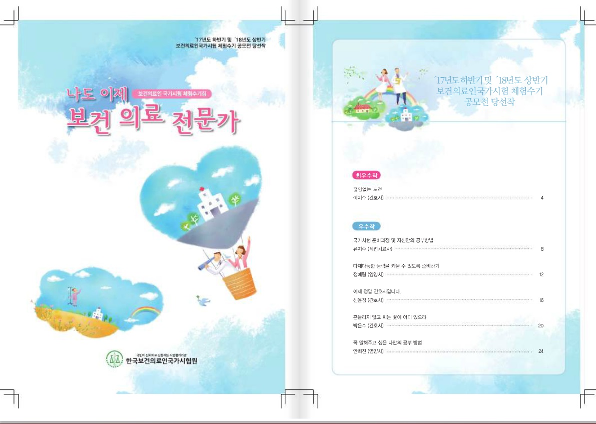 2017년도 하반기와 2018년도 상반기에 국가시험을 치른 보건의료인을 대상으로 간행된 이번 체험수기집은 보건의료인 국시를 준비하는 예비 보건의료인들에게 국가시험 준비에 도움을 주기 위해 기획됐다.