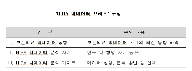 한편 'HIRA 빅데이터 브리프'는 지난해 3월 창간호를 시작으로 분기별 1회(연 4회) 발간하고 있으며, 이달 말 제2권 2호가 발간될 예정이다.