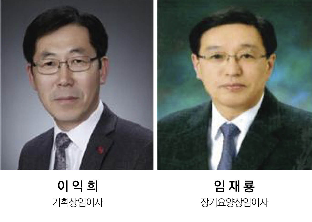 [한의신문=강환웅 기자] 국민건강보험공단(이하 건보공단)은 상임이사 공개모집 절차를 거쳐 오는 16일 신임 기획상임이사에 이익희씨와 신임 장기요양상임이사에 임재룡씨를 각각 임명한다고 12일 밝혔다.