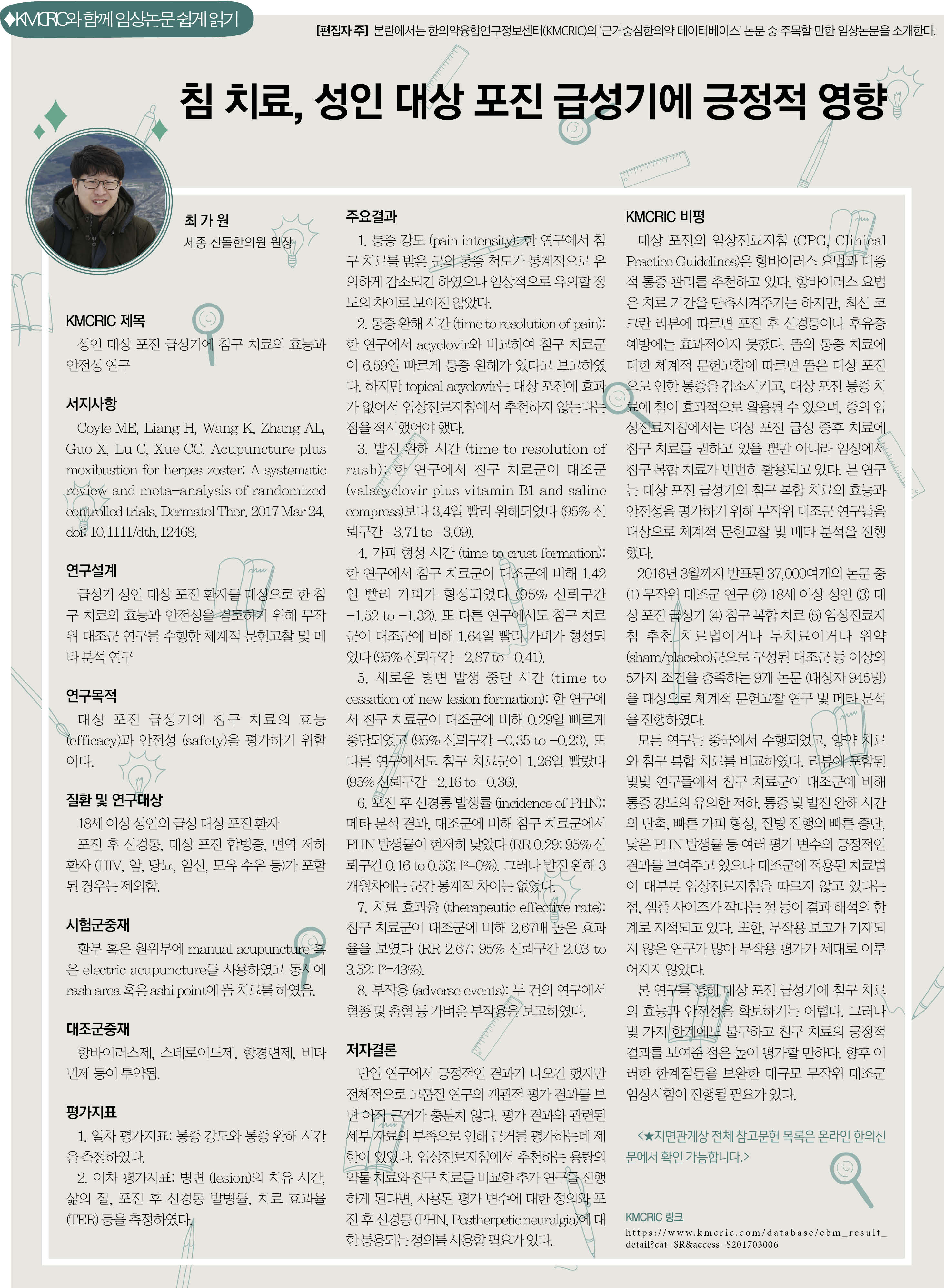 [편집자 주] 본란에서는 한의약융합연구정보센터(KMCRIC)의 '근거중심한의약 데이터베이스' 논문 중 주목할 만한 임상논문을 소개한다.