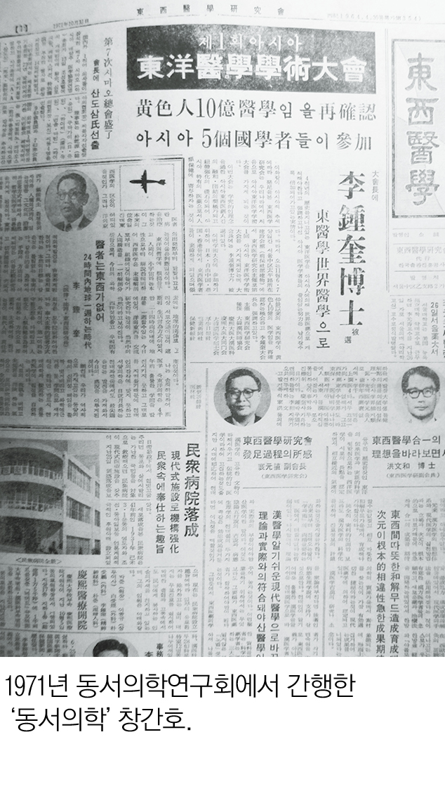 “이와 같이 아시아적 추세에 따라 발족을 본 東西醫學硏究會는 우리나라에서 처음으로 아시아 東洋醫學學術大會를 가지게 되는 것이다. 이번 대회는 학구적인 이념을 통한 아시아 東西醫學人間의 融化, 團結의 契機가 되고 紐帶强化의 礎石이 되어 아시아 특유의 醫藥으로서 人類保健에 寄與하자는 것이다. 따라서 오는 11월 6일, 7일 양일간 서울 중구 태평로 소재 건설회관에서 東西醫學硏究會 主催로 제1회 아시아 東洋醫學學術大會를 가지게 되었다. 이번 학술대회에 참가하기 위하여 일본, 대만, 태국, 홍콩 등에서 동서의학자들이 來韓하게 되었으며, 張仲景 이래의 東西醫學이 黃色人 10億의 醫學임을 재확인하는 기회였다. 주최 동서의학연구회. 후원 대한한의사협회, 경희대 한의과, 경희대 한의대 동문회, 대한한의학석사회, 후생일보사, 약업신문사, 보건신보사.”