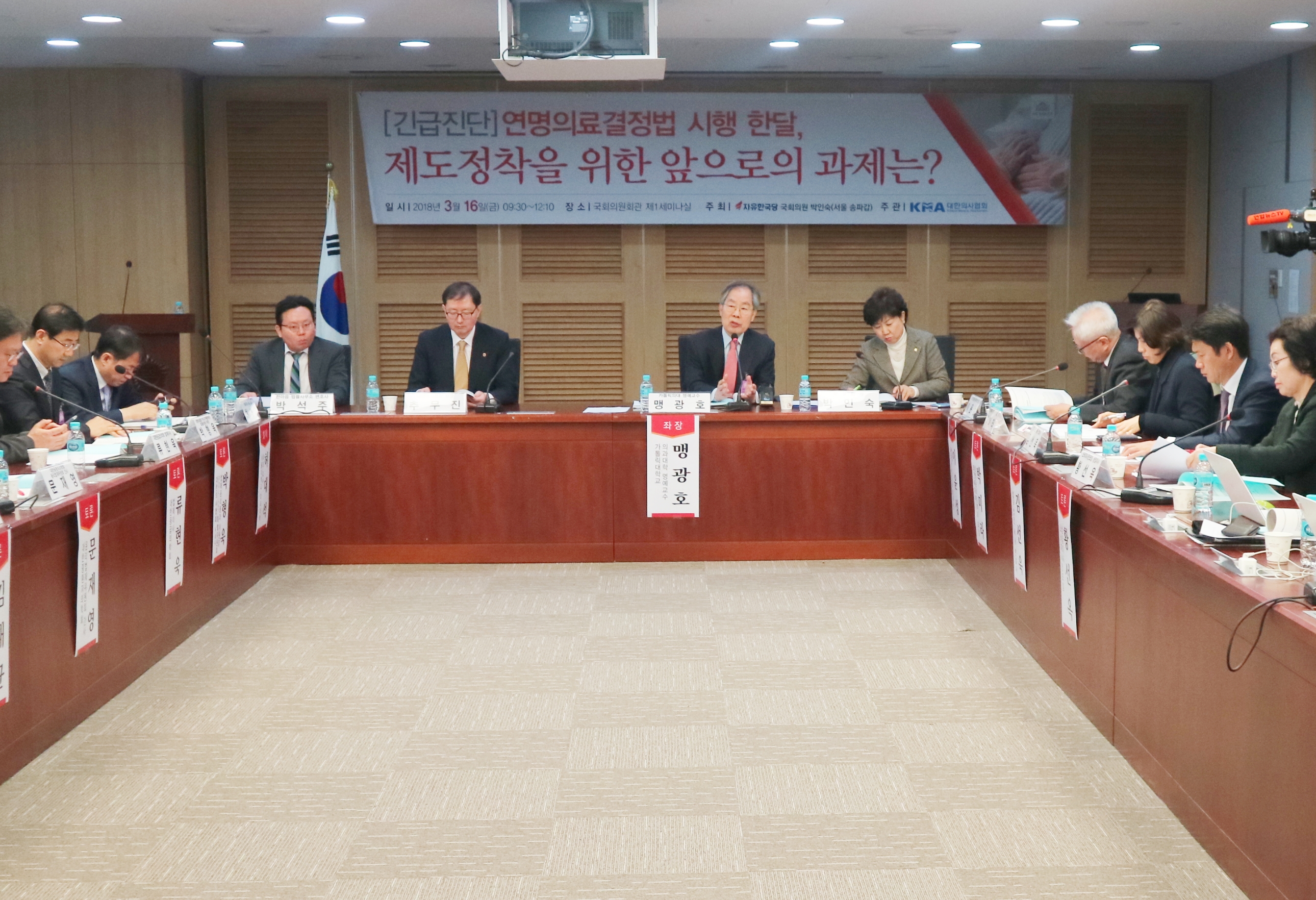 국회 보건복지위원회 소속 박인숙 자유한국당 의원실은 16일 국회의원회관 제1세미나실에서 ‘연명의료결정법 시행 한달, 제도정착을 위한 앞으로의 과제는?’ 토론회를 개최했다.