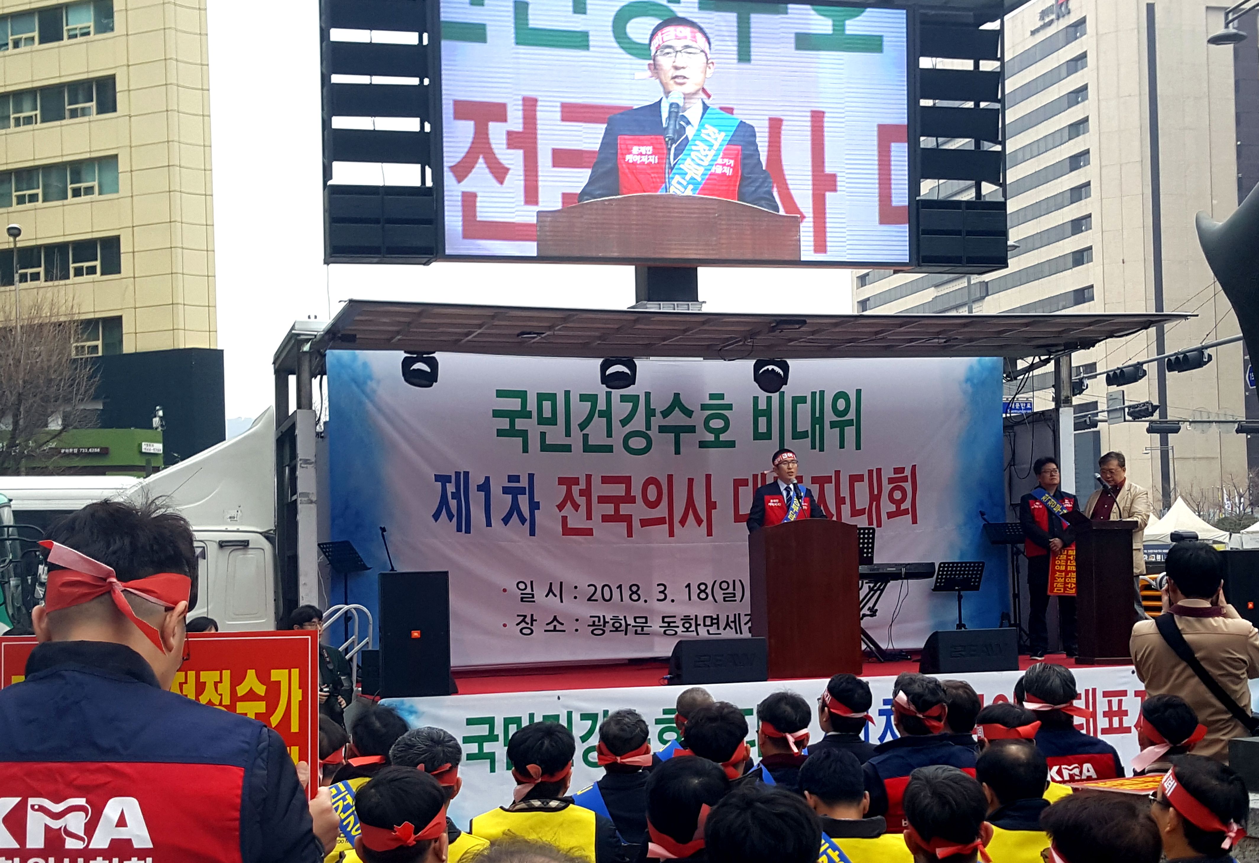 [한의신문=최성훈 기자] 대한의사협회 비상대책위원회(이하 의협 비대위)가 18일 서울 광화문 동화면세점 앞에서 문재인케어 저지를 위한 집단행동에 나섰다.