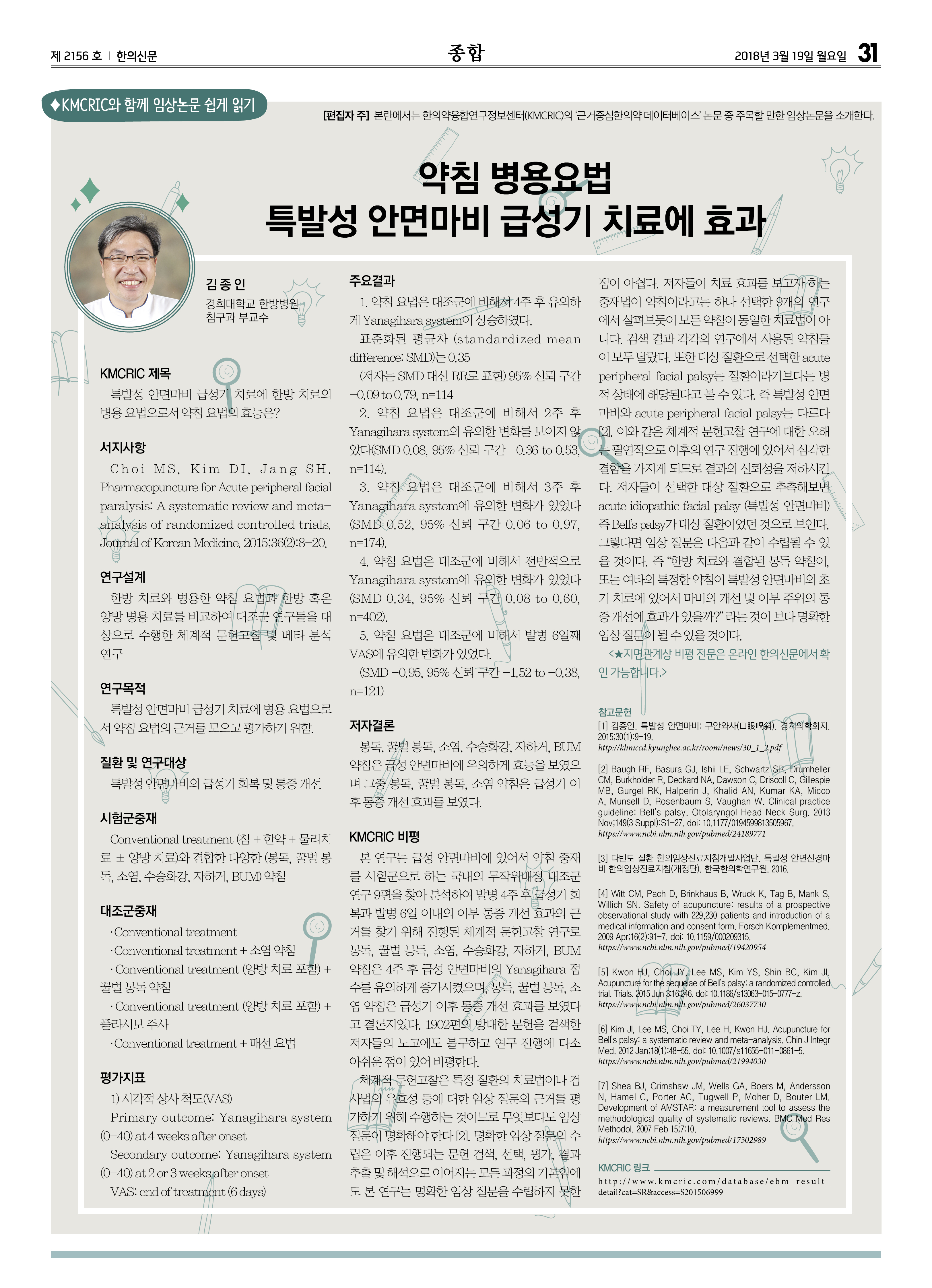 [편집자 주] 본란에서는 한의약융합연구정보센터(KMCRIC)의 '근거중심한의약 데이터베이스' 논문 중 주목할 만한 임상논문을 소개한다.