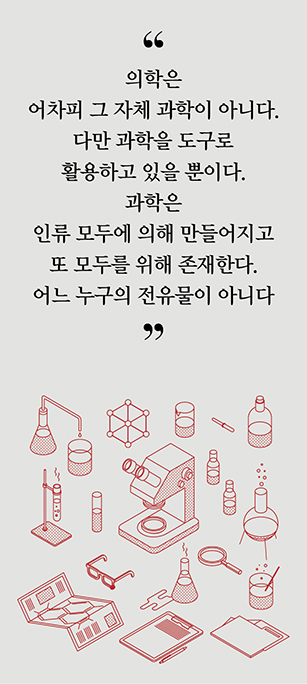의학은 어차피 그 자체 과학이 아니다. 다만 과학을 도구로 활용하고 있을 뿐이다. 과학은 인류 모두에 의해 만들어지고 또 모두를 위해 존재한다. 어느 누구의 전유물이 아니다.