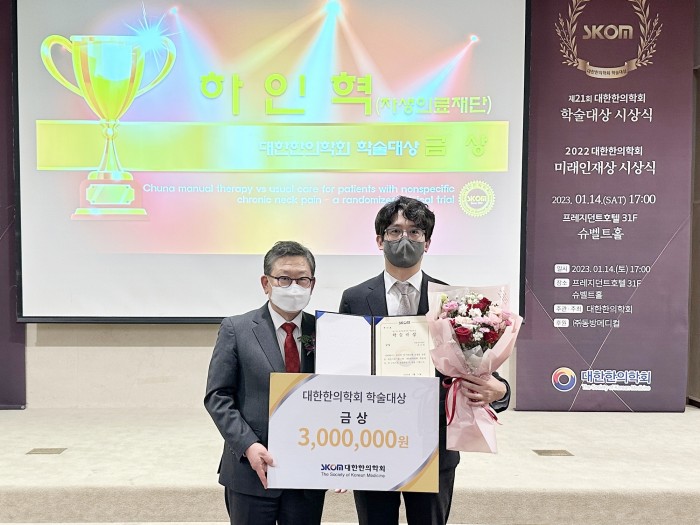 ‘목통증 환자에 대한 추나 치료 효과’에 대한 임상 논문으로 대한한의학회의 제21회 학술대상 금상을 수상한 하인혁 소장은 현재 자생의료재단 척추관절연구소 소장과 부천자생한방병원 병원장을 겸직하고 있다.