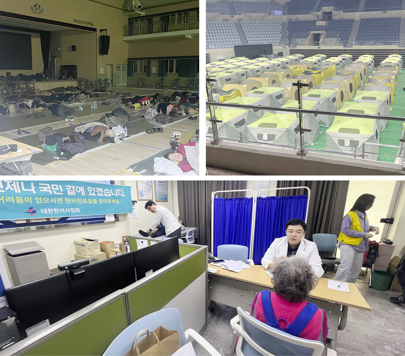 대형 체육관 대피소는 점차 폐쇄되고 있으며, 모텔이나 펜션, 경로당, 마을회관으로 분산 배치된 이재민들을 위해 방문 진료의 비중이 점점 커지고 있습니다. 새로운 형태의 봉사, 새로운 방식의 연대가 만들어지고 있습니다.