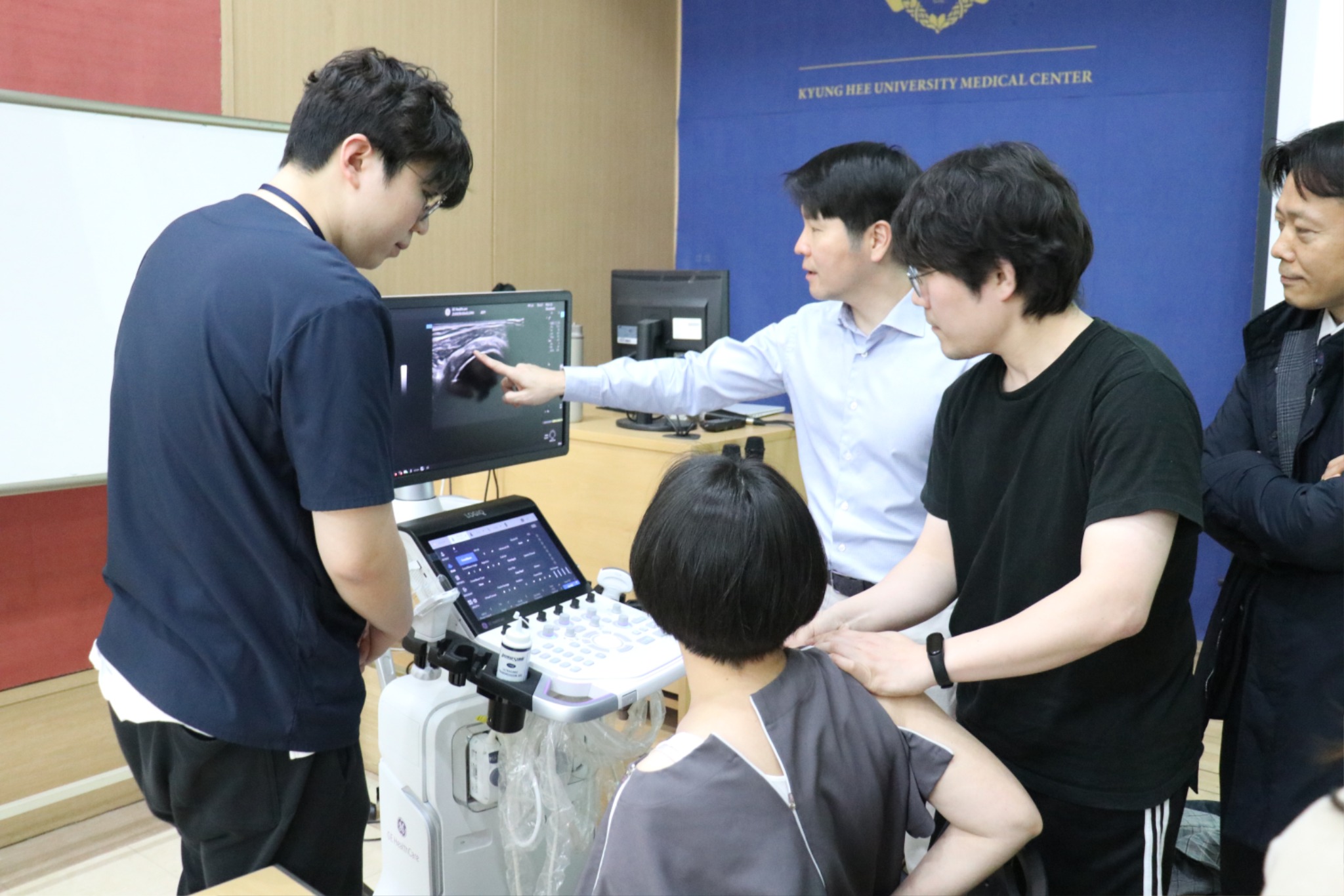 시연 후에는 이승훈 교수의 지도 아래 참여자들이 2인 1조로 조를 나누어 강의를 통해 배운 초음파 진단기기 활용법을 실습해 보는 시간을 가져 큰 호응을 얻었다.