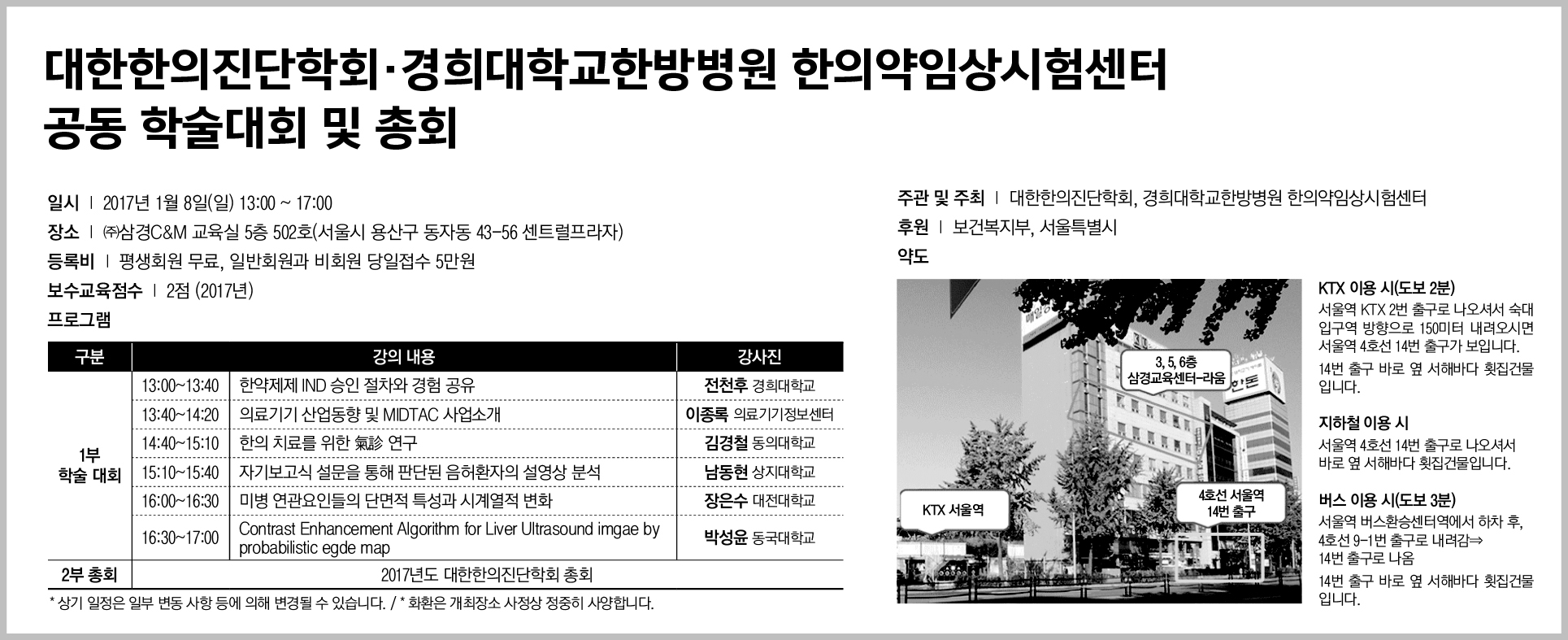 1/7 한의진단학회, 경희대임상시험센터 공동 학술대회