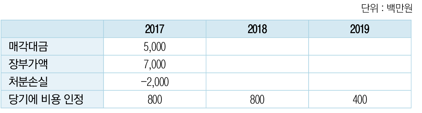 단 1년 한도가 8백만원이므로 처분손실 2천만원중 올해는 8백만원만 계상하고 남은 차액은 내년에 8백만원 내후년에 4백만원 계상해야 한다.