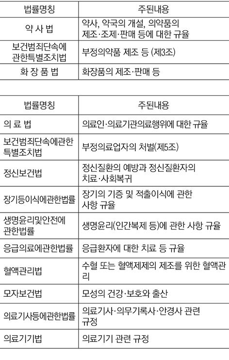 행한 무면허의료행위, 허위처방전 발급, 의료광고 준수규정위반 등 의료인의 불법행위 등을 예로 들 수 있다.