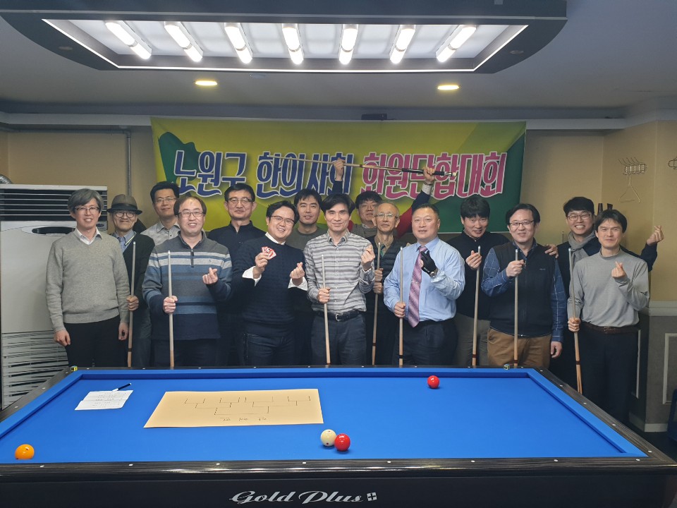 [한의신문=김태호 기자] 노원구한의사회(회장 김선제)는 지난 22일 김선제 회장을 비롯 나철 신임회장, 박근도 명예회장, 한상협 총회의장 등 많은 회원들이 참석한 가운데 회원단합을 위한 당구대회를 개최했다.