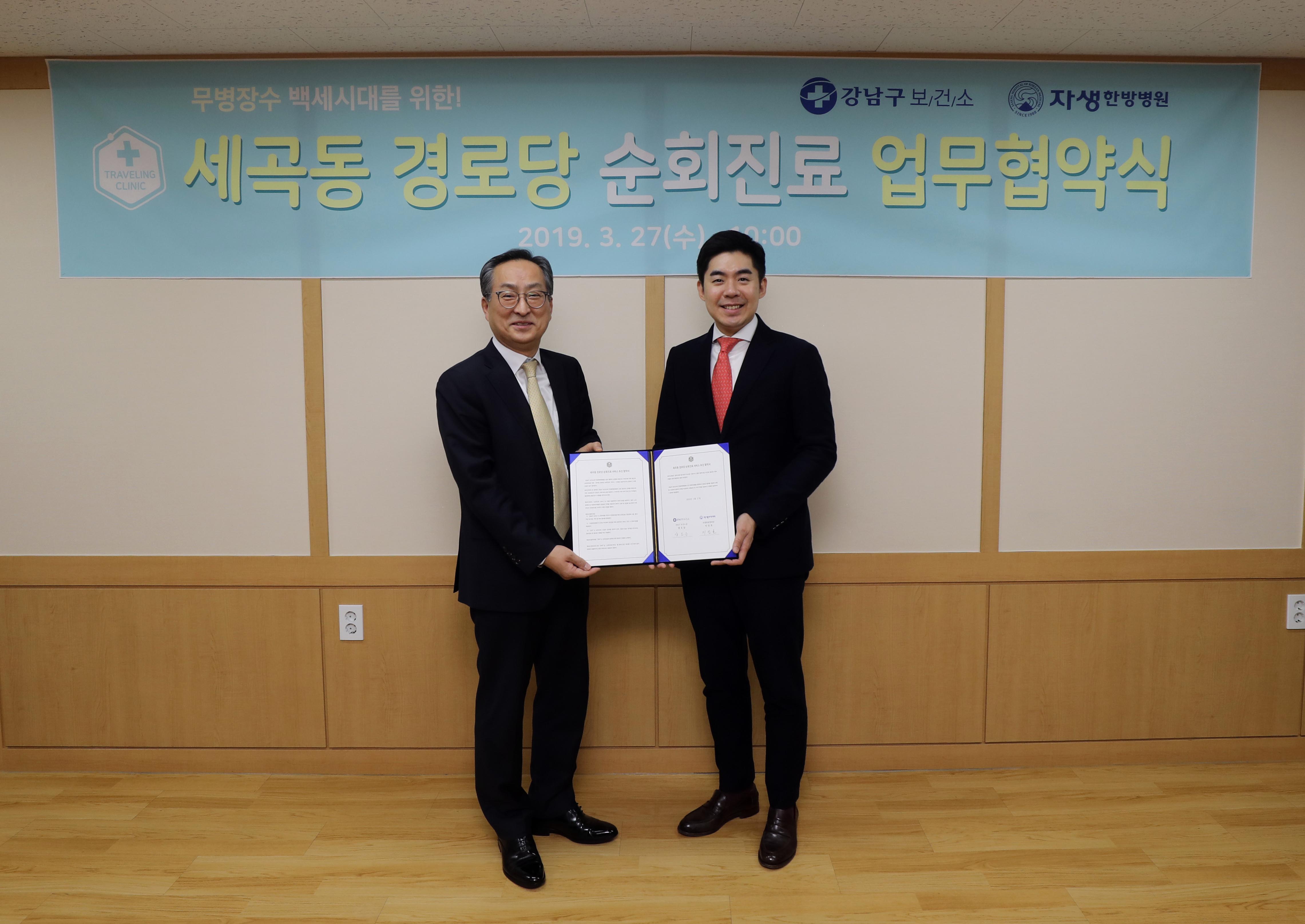 자생한방병원·강남구 MOU 체결, 세곡동 23개소 경로당 대상 무료진료