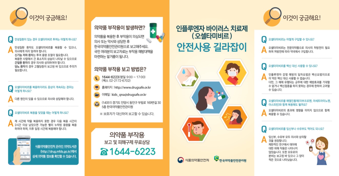 또한 2009년에는 “10세 이상의 미성년 환자에 있어서는 인과관계는 불분명하지만 이 약의 복용 후에 이상행동이 발현하고 추락 등의 사고에 이른 예가 보고되고 있다”는 내용의 안전성 서한을 배포했으며 2017년 8월에는 타미플루 제품 안전 사용을 위한 ‘인플루엔자 바이러스 치료제(오셀타미비르) 안잔사용 길라잡이’ 리플렛을 제작, 배포했다.