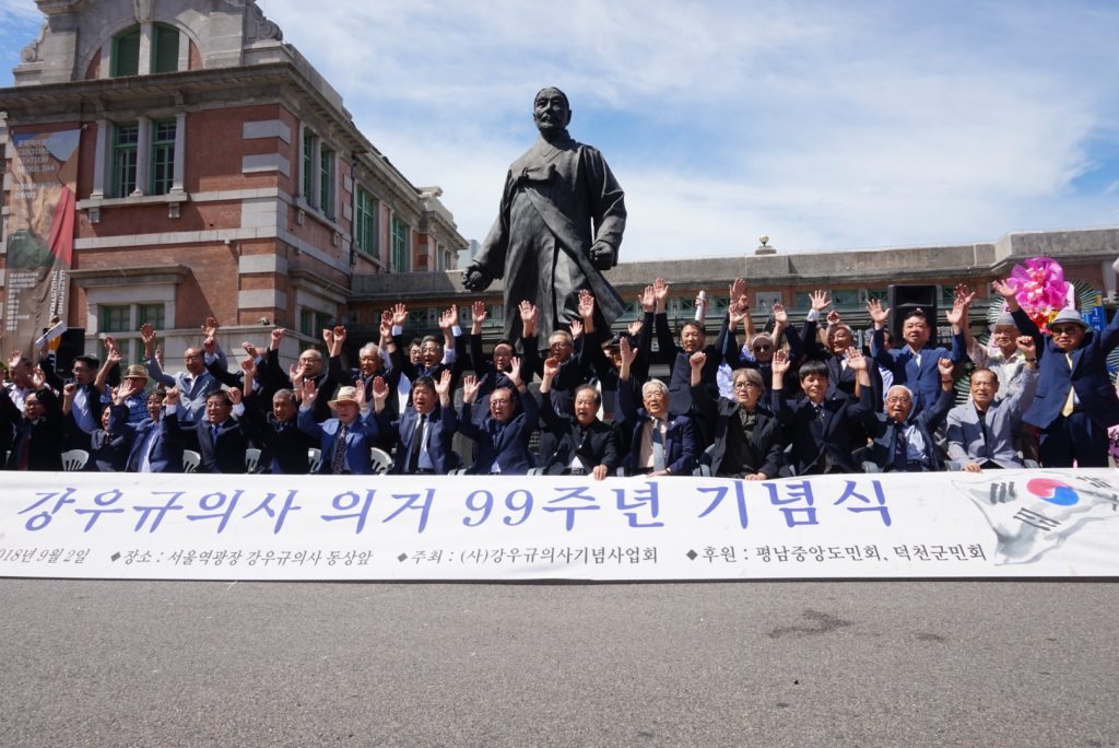 나종화 광복회 부회장은 “현재 우리 민족이 그토록 바랐던 남북 평화모드가 조성돼 4.27 판문점 선언과 6.12 북미회담을 거치며 이산가족 상봉 등이 진행됐고 아시아게임서 보여준 남북 단일팀 선전은 남북한 모두가 가슴을 뛰게 하는데 부족함이 없다”며 “여러 분야에서 남과 북이 손을 맞잡고 함께 하는 모습을 강우규 의사를 비롯한 독립의사 선현들께서 보시면 기쁘고 흐뭇할 것이다. 우리 민족 모두가 기적처럼 찾아온 한반도의 평화모드를 이어가야 할 이유가 여기에 있다”고 목소리를 높였다.