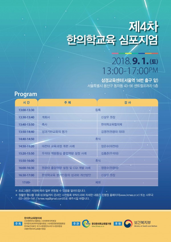 올해로 제4차를 맞은 한의학교육심포지엄은 변화하는 시대에 발 맞춰 한의과대학 평가인증과 한의학교육에 대한 여론을 수렴하기 위해 기획됐다.