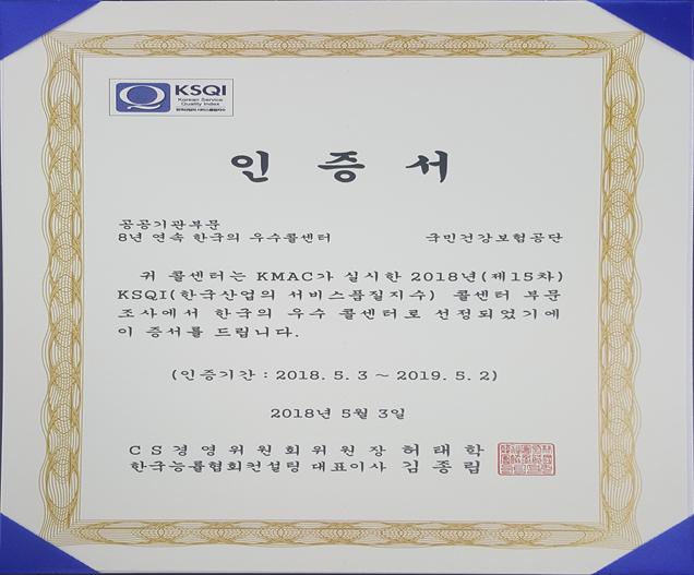 [한의신문=강환웅 기자] 국민건강보험공단(이하 건보공단)은 28일 한국능률협회컨설팅(KMAC)이 주관한 '2018년 한국산업의 서비스 품질지수(KSQI)' 조사 결과 8년 연속 '한국의 우수콜센터'로 선정됐다고 밝혔다.
