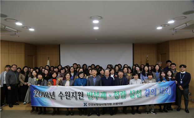 [한의신문=강환웅 기자] 건강보험심사평가원 수원지원(이하 수원지원)은 6일 수원지원 지하강당에서 청렴 조직문화 정착을 위한 '반부패·청렴 실천 결의대회'를 개최했다.
