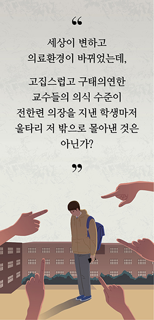 세상이 변하고 의료환경이 바뀌었는데, 고집스럽고 구태의연한 교수들의 의식 수준이 전한련 의장을 지낸 학생마저 울타리 저 밖으로 몰아낸 것은 아닌가?