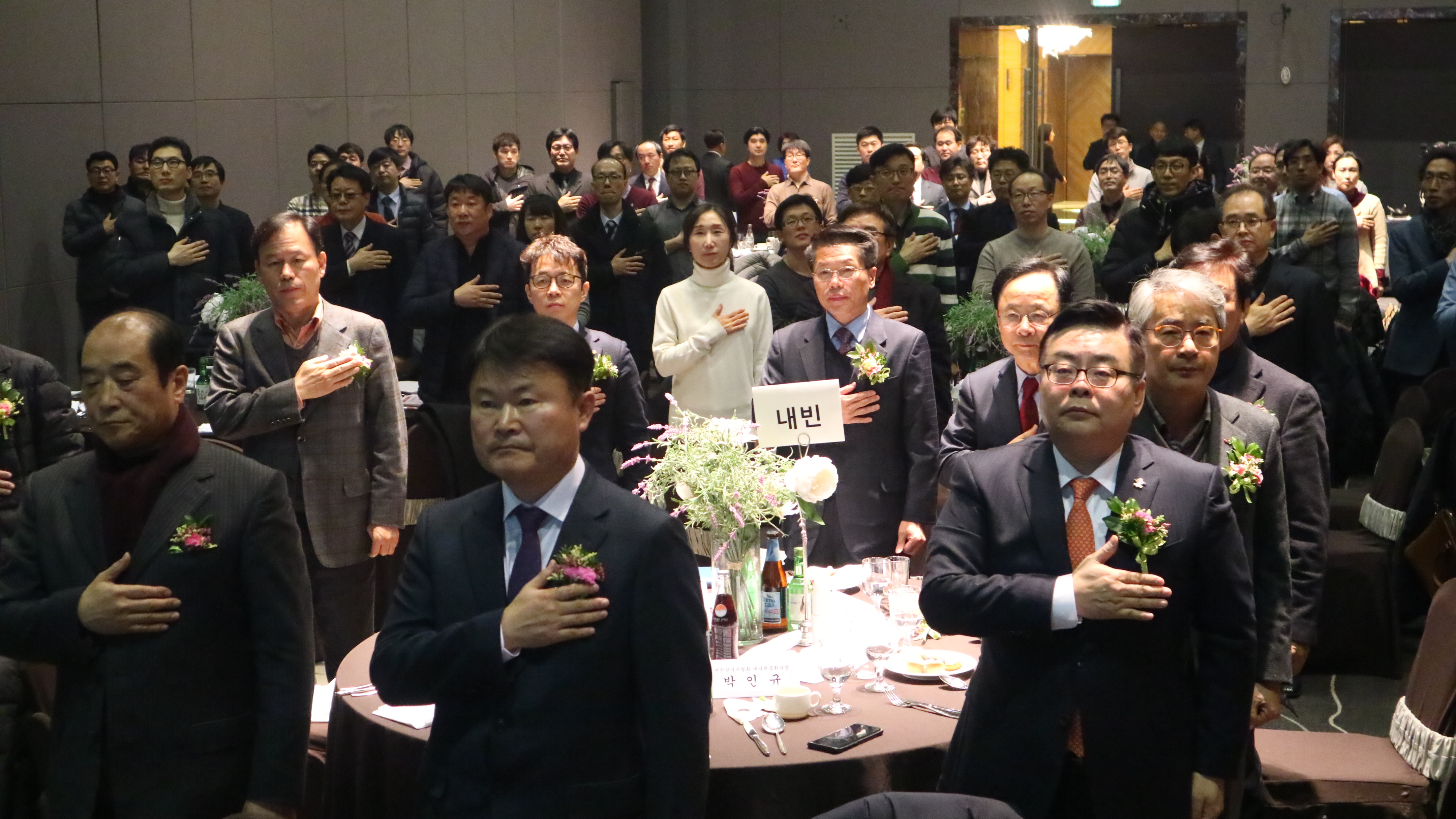 경남한의사회 정기총회에 앞서 국민의례하는 내빈들