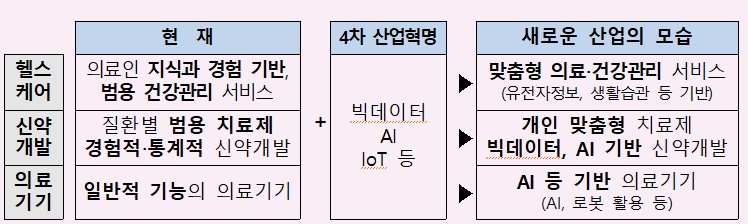 이번에 발표되는 전략에서는 △보안형 바이오 빅데이터 플랫폼 구축 및 빅데이터 기반 헬스케어 서비스 실증 추진 △국내 신약의 글로벌 경쟁력 제고 및 개방형 혁신 생태계 구축 △수요자 맞춤 의료기기 및 신개념 융합 의료기기 개발 △지역 바이오 클러스터 경쟁력 강화 등의 추진 전략이 제시됐다.