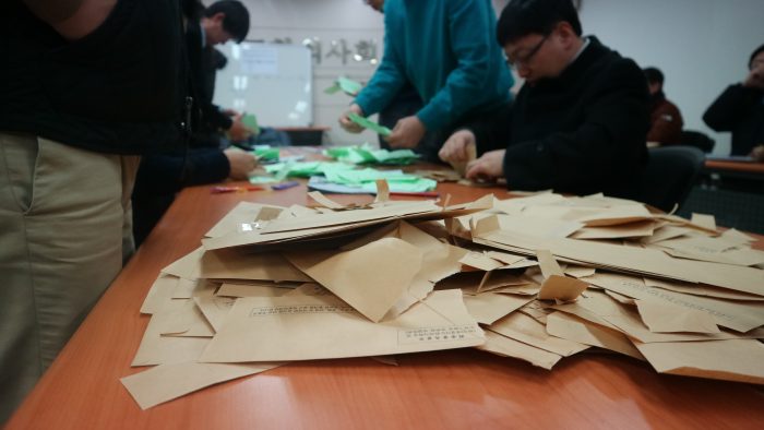 한편 이번 선거는 선거인단 2243명 중 1713명이 투표해 투표율 76.37%를 기록했으며, 유효표는 1688표 무효표는 45표였다.