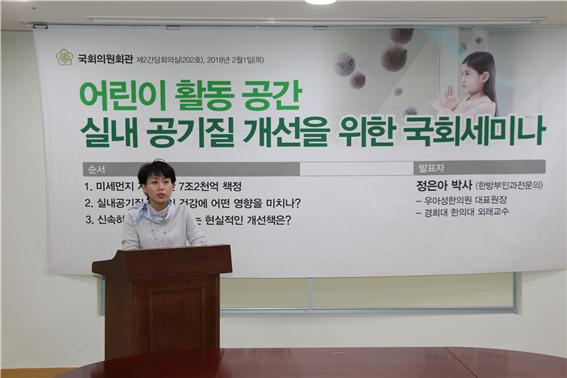 정은아 원장, '어린이 활동 공간, 실내공기 개선안' 국회세미나서 강조
