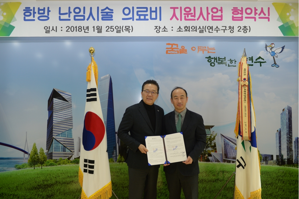 [한의신문=강환웅 기자] 인천광역시 연수구와 연수구한의사회는 25일 '한의 난임시술 의료비 지원사업' 추진을 위한 협약을 체결했다.