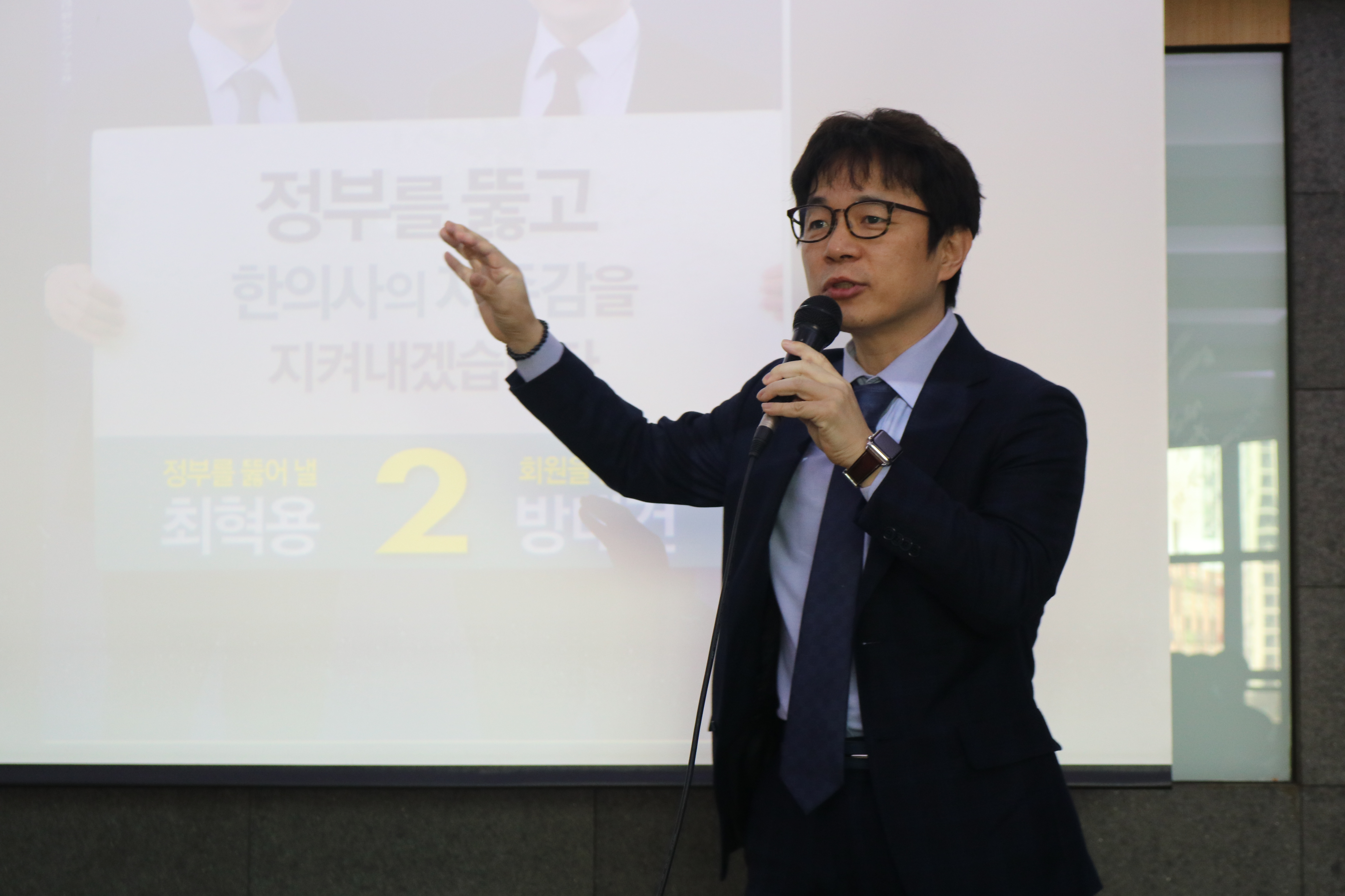 그는 또 “정부를 뚫고 한의사의 자존감을 지켜내겠다는 것은 현재의 한의의료 행위와 수단이 제한받고 있는 굴레를 벗어나, 적정한 진단과 처치가 이뤄질 수 있고, 기본적인 투약이 가능한 형태의 국가가 사주는 의료로 편입하여 국가의 필수 의료서비스를 발돋움하자는 것”이라고 말했다.