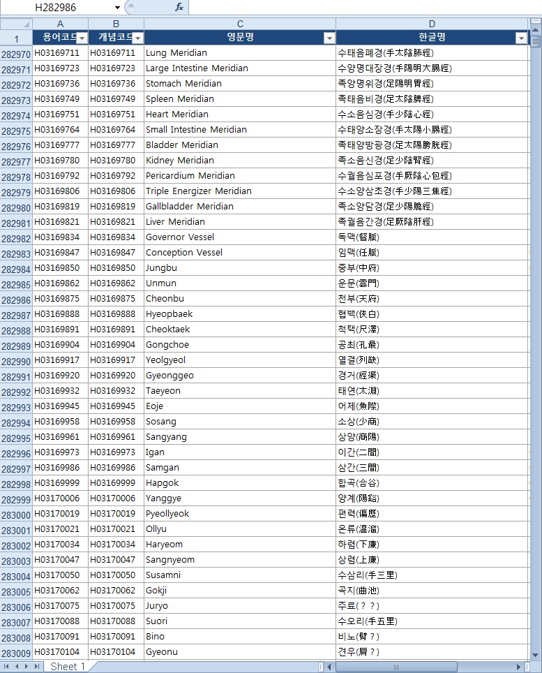 보건의료용어표준에 한의학 표준 경혈명 및 위치 375건 반영