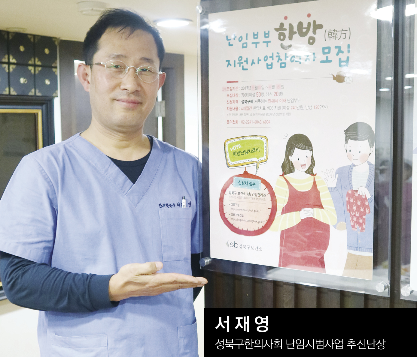 [편집자 주] 최초로 부부대상 난임치료를 선보인 서울 성북구의 ‘난임부부 한방치료지원사업’이 눈길을 끌고 있다. 이번 사업을 성공적으로 추진해온 서재영 성북구한의사회 난임시범사업추진단장으로부터 성과와 향후 방향에 대해 들어왔다.