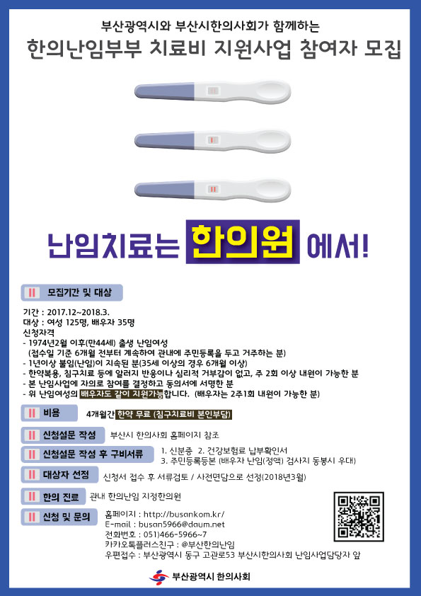 부산시한의사회, '2018 한의난임부부 치료비 지원사업' 참여자 모집