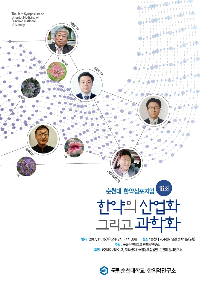 [한의신문=강환웅 기자] 국립 순천대학교 한의약연구소는 오는 16일 순천대 70주년기념관에서 '한약의 산업화 그리고 과학화'를 주제로 '제16회 한약심포지엄'을 개최한다고 지난 9일 밝혔다.