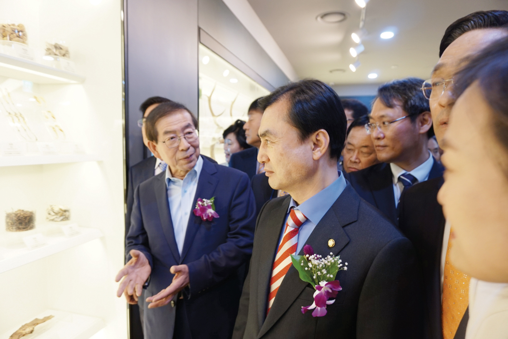 지난달 27일 (왼쪽부터)박원순 서울시장과 안규백 더불어민주당 의원이 서울한방진흥센터 내부를 둘러보고 있다.