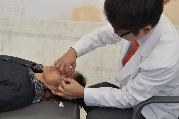 [caption id="attachment_387068" align="aligncenter" width="700"]DSC_8775 지난 14일 제18회 허준축제에서 한 한의사가 한의진료체험의 일환으로 관람객에게 안면미소침을 시술하고 있다. 이날 안면미소침은 관람객들에게 선풍적인 인기를 끌었다.[/caption]