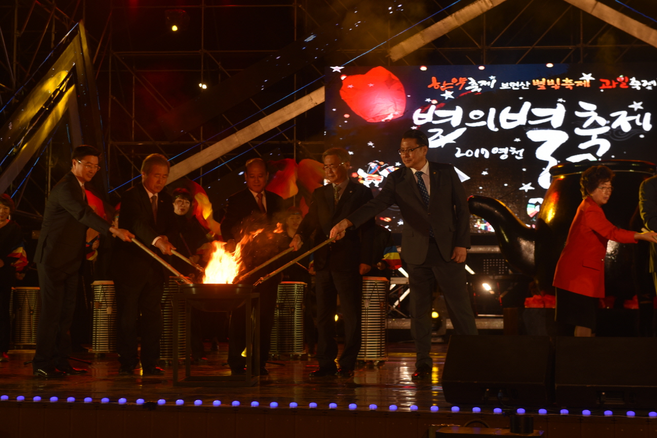 변창훈 대구한의대 총장이 지난달 30일 영천강변공원 특설무대에서 열린 제15회 영천한약축제 개막식에서 약탕기점화를 하고 있다.