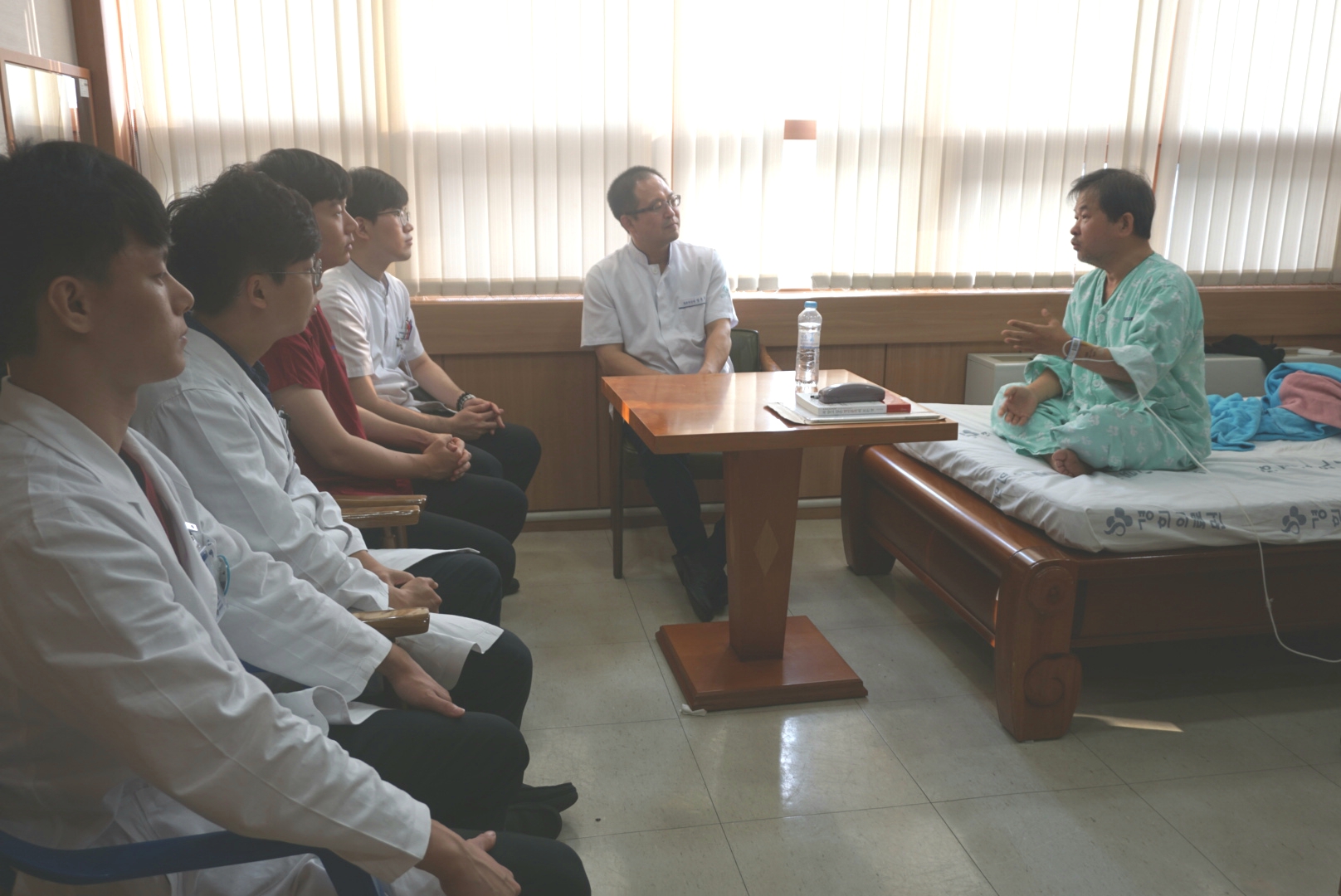 [한의신문=윤영혜 기자]단식 중단 뒤 병원에서 회복 치료를 받고 있는 김필건 대한한의사협회(이하 한의협) 회장이 진로 모색에 고민을 하고 있을 경희대한방병원 수련의들을 만나 한의사의 미래와 보건의료제도 개선에 대해 면담하는 시간을 가졌다.