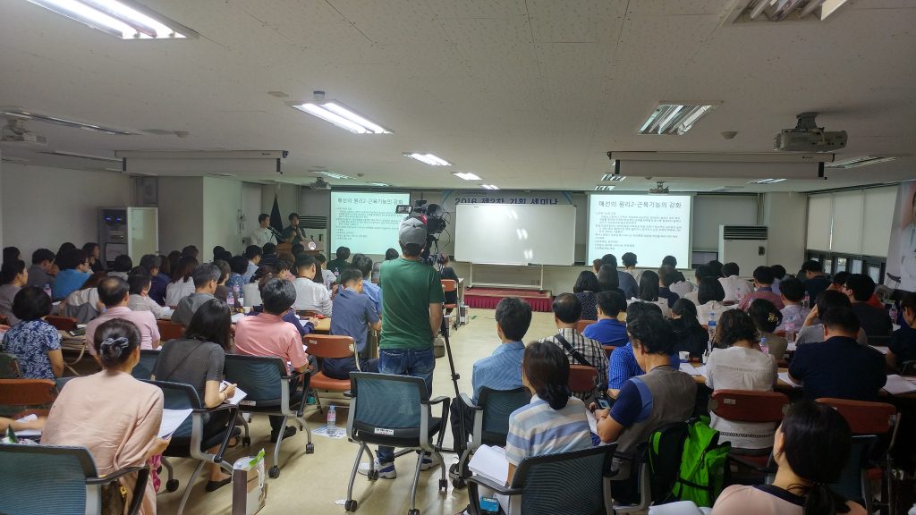대한여한의사회가 지난 해 7월 2일 자생한방병에서 '통증 질환에 응용할 수 있는 매선 치료법'을 주제로 기획 세미나를 열고 있다.